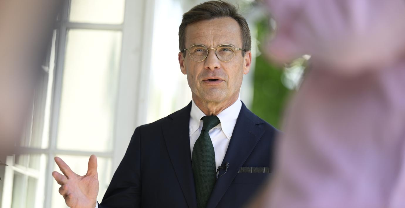 När sändningen återupptogs var Kristersson mitt uppe i sitt avslutande resonemang och varför han är stolt över att vara svensk: