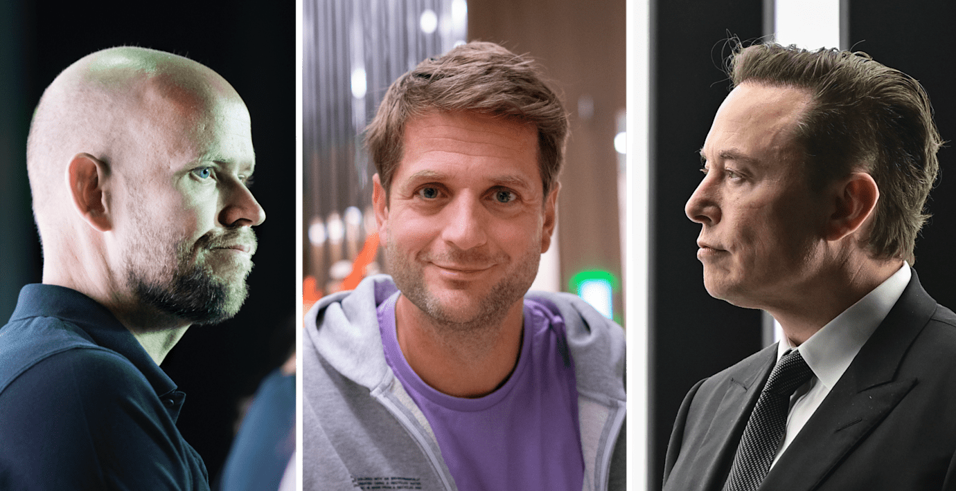 Daniel Ek, Spotify, Sebastian Siemiatkowski, Klarna, samt Elon Musk, Tesla. (TT.)