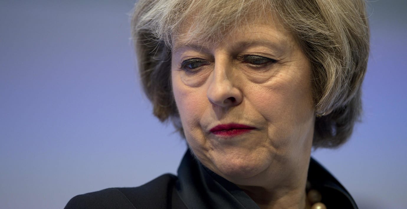 Theresa May filar på en inbjudan till Donald Trump