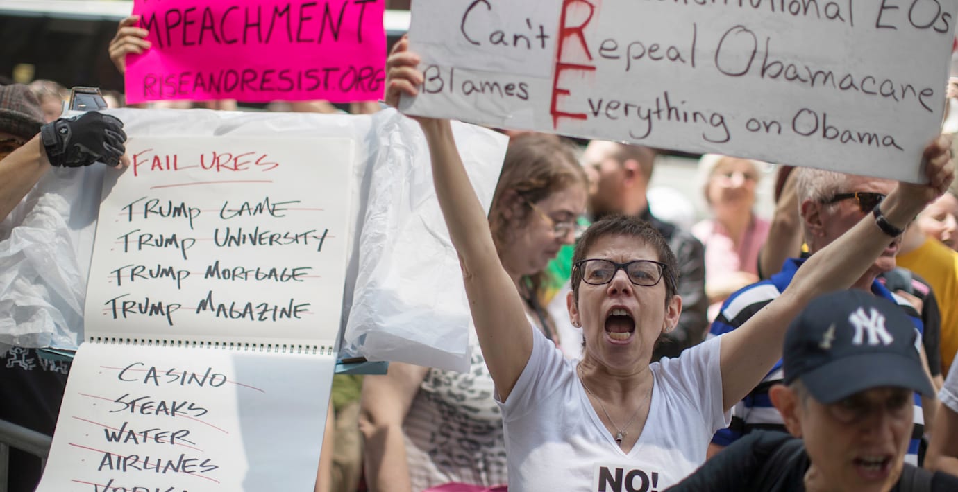Tiotusentals deltog i protestmarsch mot Trump