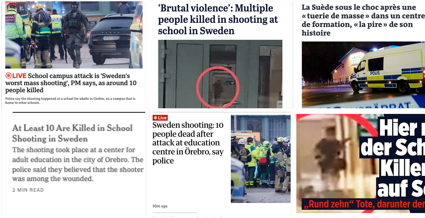 Alla medier slår fast att våldsdådet är den värsta masskjutningen i svensk historia – och att den skickar chockvågor över Sverige.