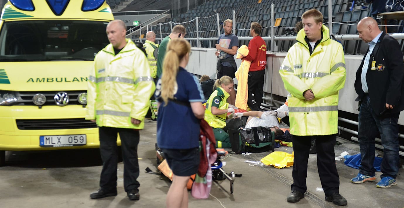 – De har fallit ned i betongen och någon behandlas fortfarande. Det har pågått under en längre tid av ambulanspersonal, sa Lasse Granqvist i C Mores sändning.
