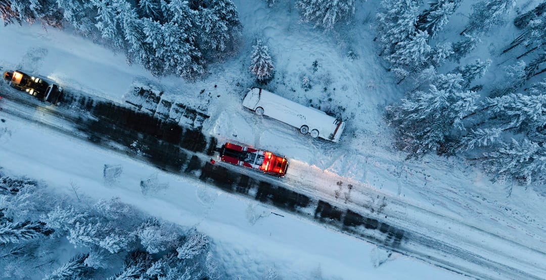 Bussen körde omkull i en kurva på E45 på lördagsmorgonen. Det var snöigt och mycket halt väglag vid tillfället, enligt SVT Nyheter Västerbotten.