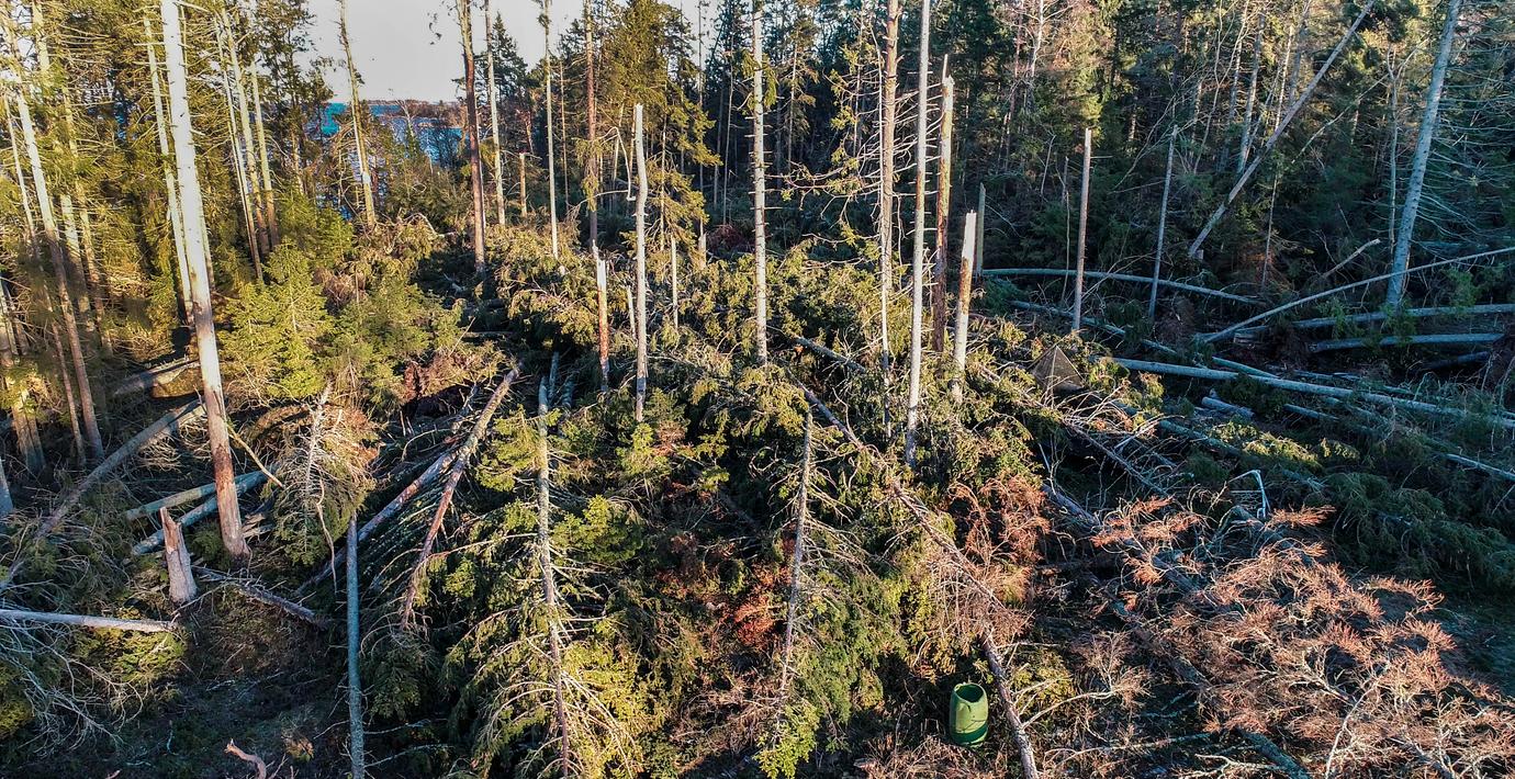 I Dalarna har tromber orsakat stor förödelse i skogen under torsdagen, enligt SVT Dalarna som använt drönare för att fotografera en stor mängd välta träd i skogen.