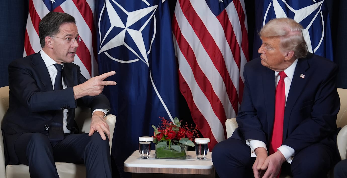Inte heller Natochefen Mark Rutte kommer med några detaljer. Han strör i stället lovord över Trump.