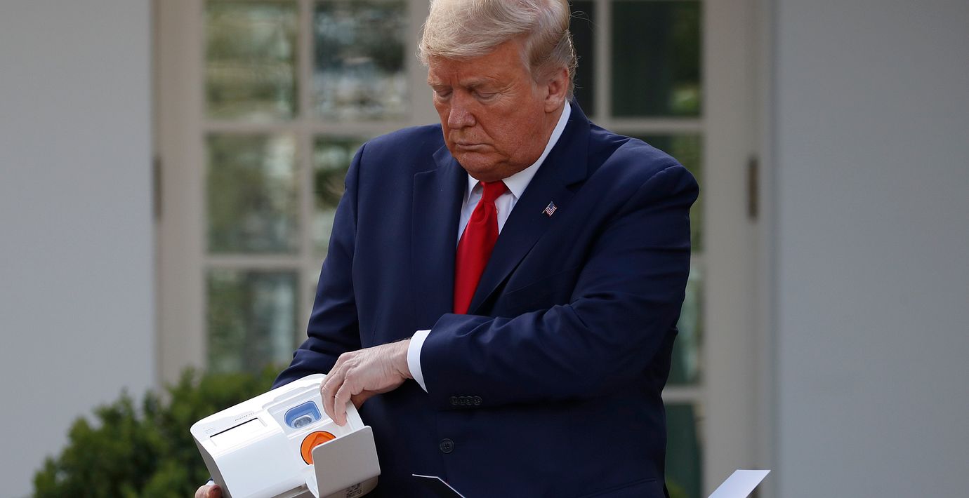 Trump meddelade också att en ny steriliseringsmaskin har godkänts i landet. Med den kan sjukvårdartiklar steriliseras så att de kan användas flera gånger i stället för att kastas bort. Han visade också upp en ny apparat för snabbtest som inom fem minuter ska visa om den testade är smittad, skriver ABC News.
