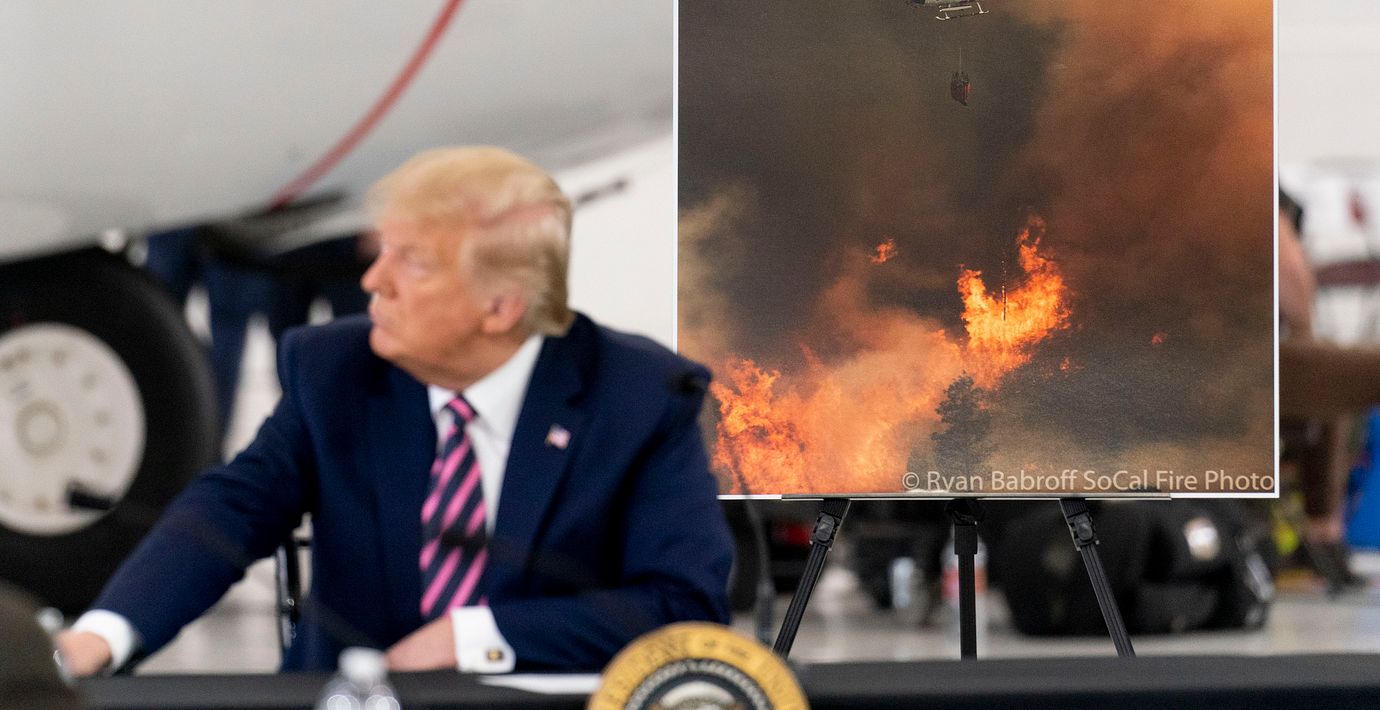 Det är i huvudsak dålig skogsvård som ligger bakom de omfattande och återkommande bränderna i västra USA. Det sa president när han under måndagen besökte ett brandområde i Kalifornien.