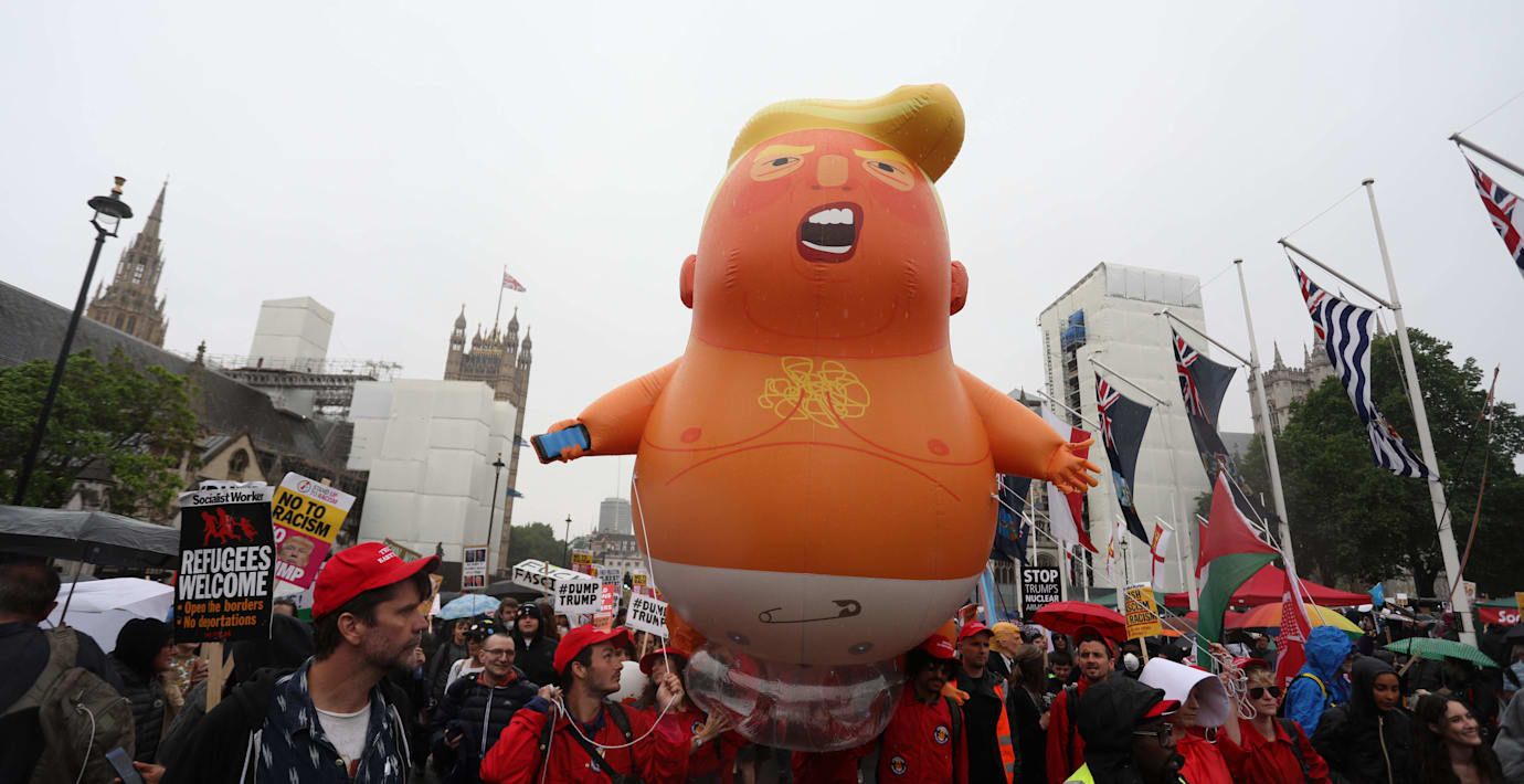 Tusentals människor har under dagen samlats i centrala London för att protestera mot att USA:s president Donald Trump är på besök, skriver flera medier. Demonstrationerna var dock betydligt mindre än vid Trumps tidigare besök, skriver Bloomberg.