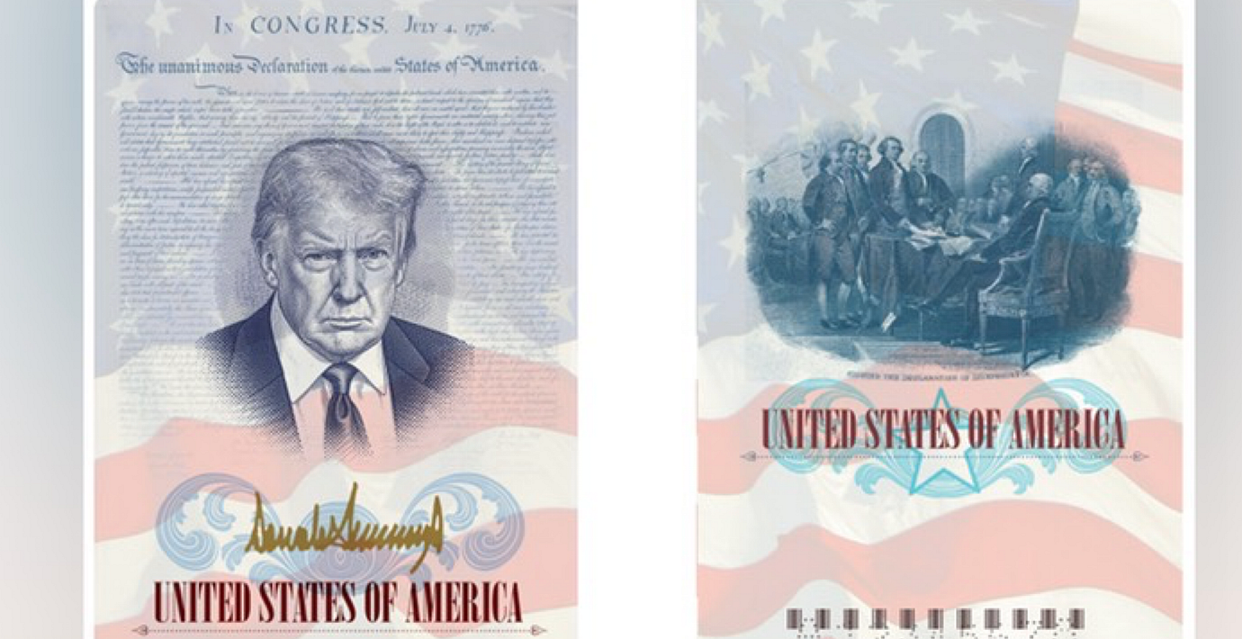 Trump sätter sitt ansikte på amerikanska pass