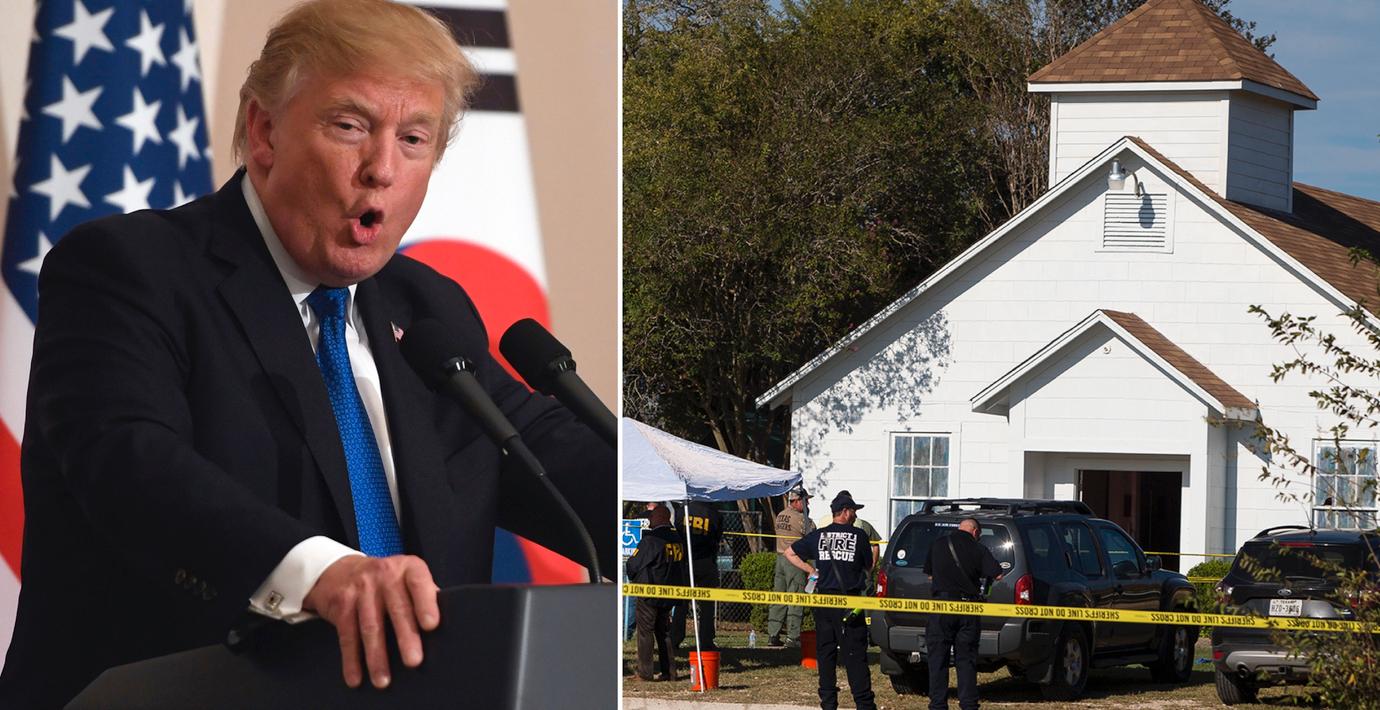 Presidenten menar att skärpta bakgrundskontroller inte skulle ha ”gjort någon skillnad” i attacken som krävde 26 liv. Han hyllar även Stephen Willeford som skottskadade och jagade gärningsmannen Devin Kelley.