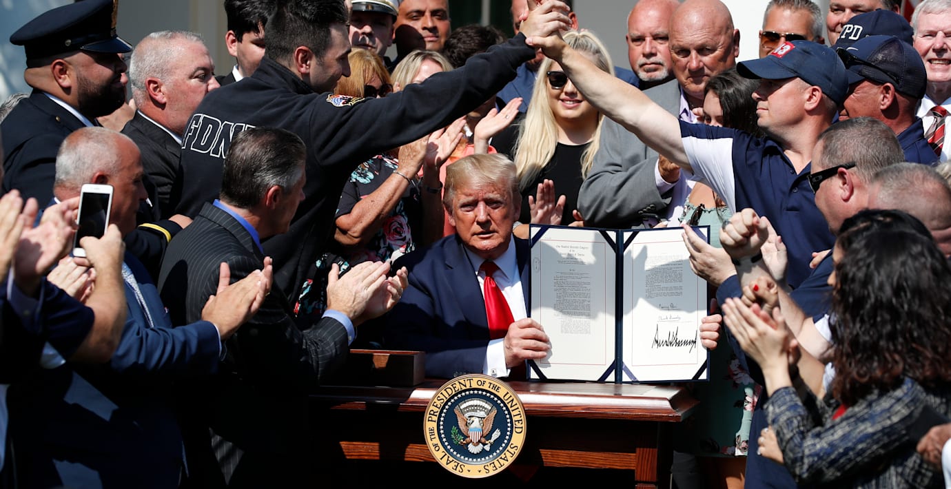 President Donald Trump skrev i dag under en lag om att blåljuspersonal som drabbats av cancer och andra sjukdomar efter att ha ryckt ut vid terrordåden den 11 september 2001 ska få förnyad ersättning.