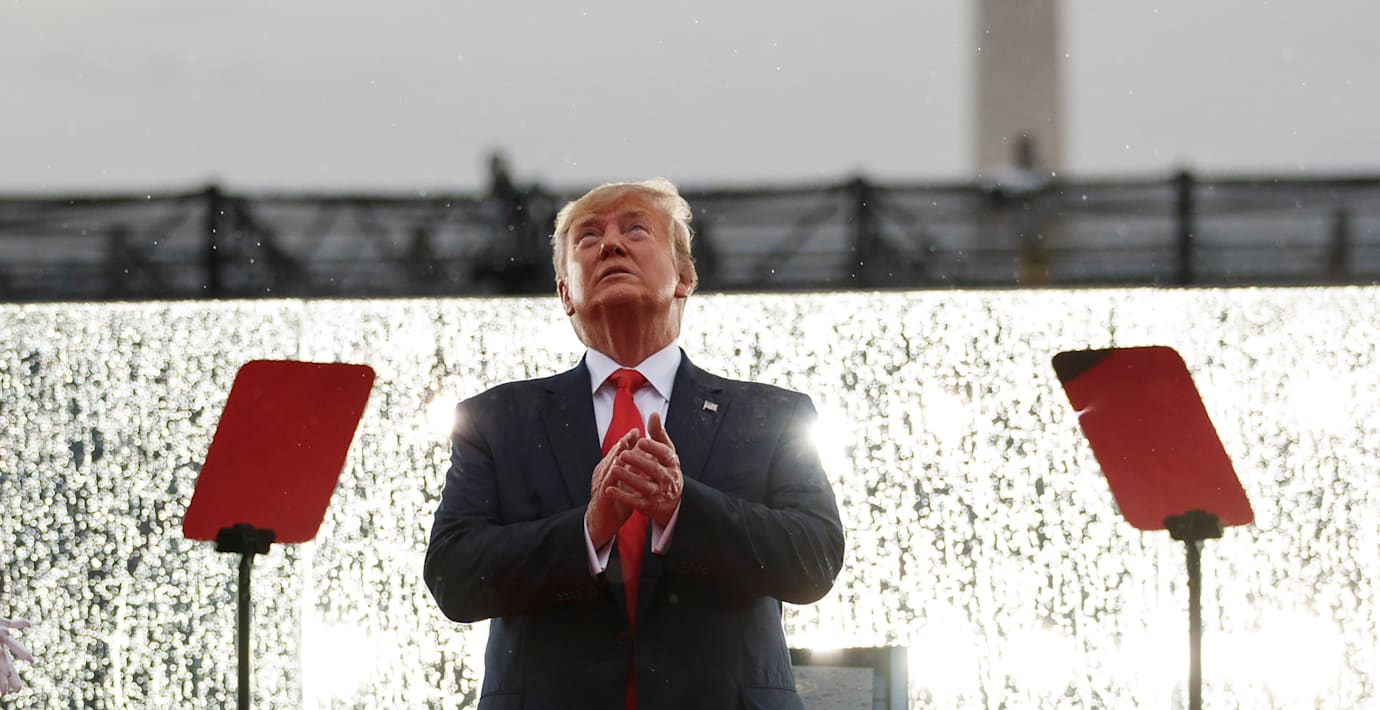 I natt svensk tid höll USA:s president Donald Trump tal – och hyllade försvaret medan militärplan dundrade i skyn. Han tog även upp den planerade sjätte grenen i USA:s försvar, rymdstyrkan – och lovade att inom en snar framtid sätta den amerikanska flaggan på Mars, rapporterar The Guardian.