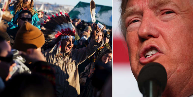 Planerna på en kontroversiell oljeledning i North Dakota i USA har stoppats efter månader av protester från ursprungsbefolkning och miljöaktivister. Men den tillträdande presidenten Donald Trump vill fortfarande att ledningen byggs. Trumps övergångsteam meddelade efter beslutet att projektet åter ska bedömas när Trump tillträtt i januari.