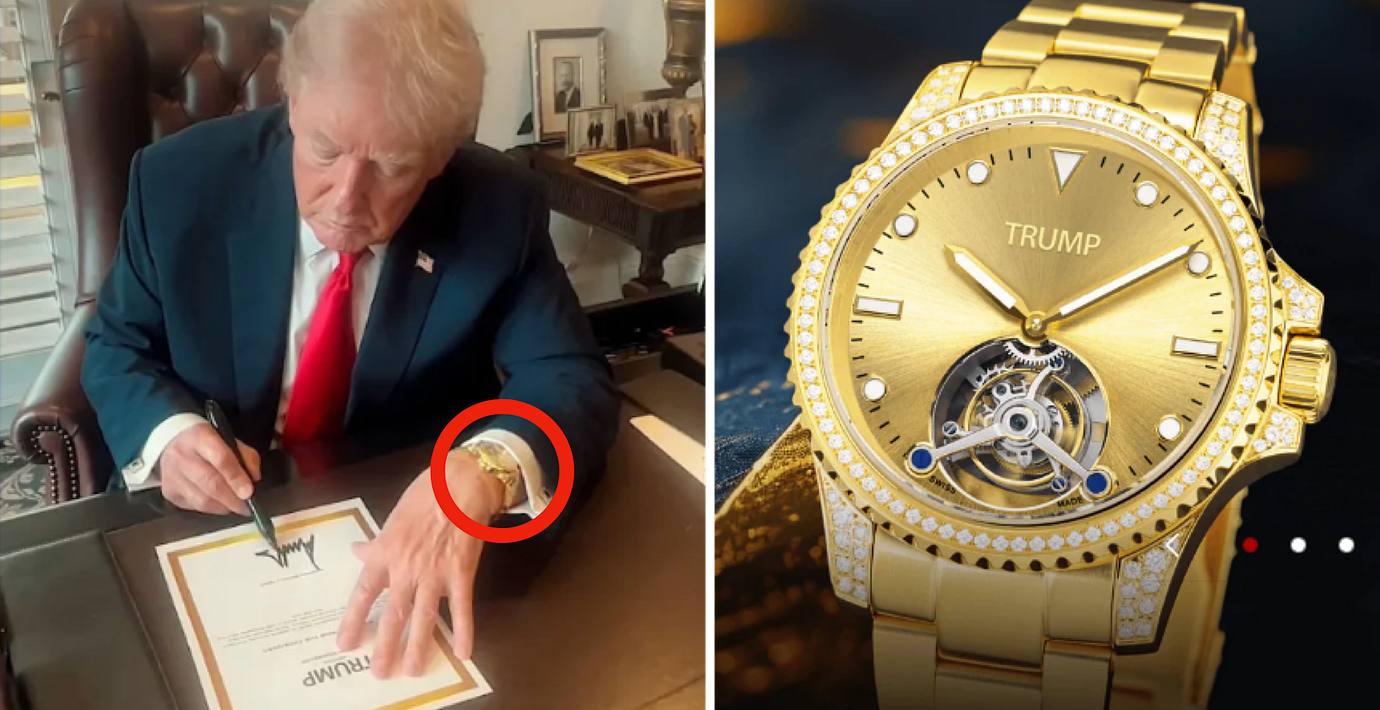 Modellen Trump Victory Tourbillon sägs innehålla 200 gram 18 karat guld och 122 diamanter. Den säljs för 100 000 dollar, ungefär en miljon kronor.