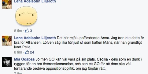 Lena Adelsohn Liljeroth visar sin besvikelse med en smiley:
