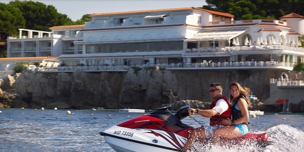 Flera turister på den franska rivieran chockades i går när de såg vad de uppfattade som en grupp IS-terrorister slå till mot ett hotell i Cannes. Männen kom iförda uniformer på en motorbåt utrustad med en svart flagga.