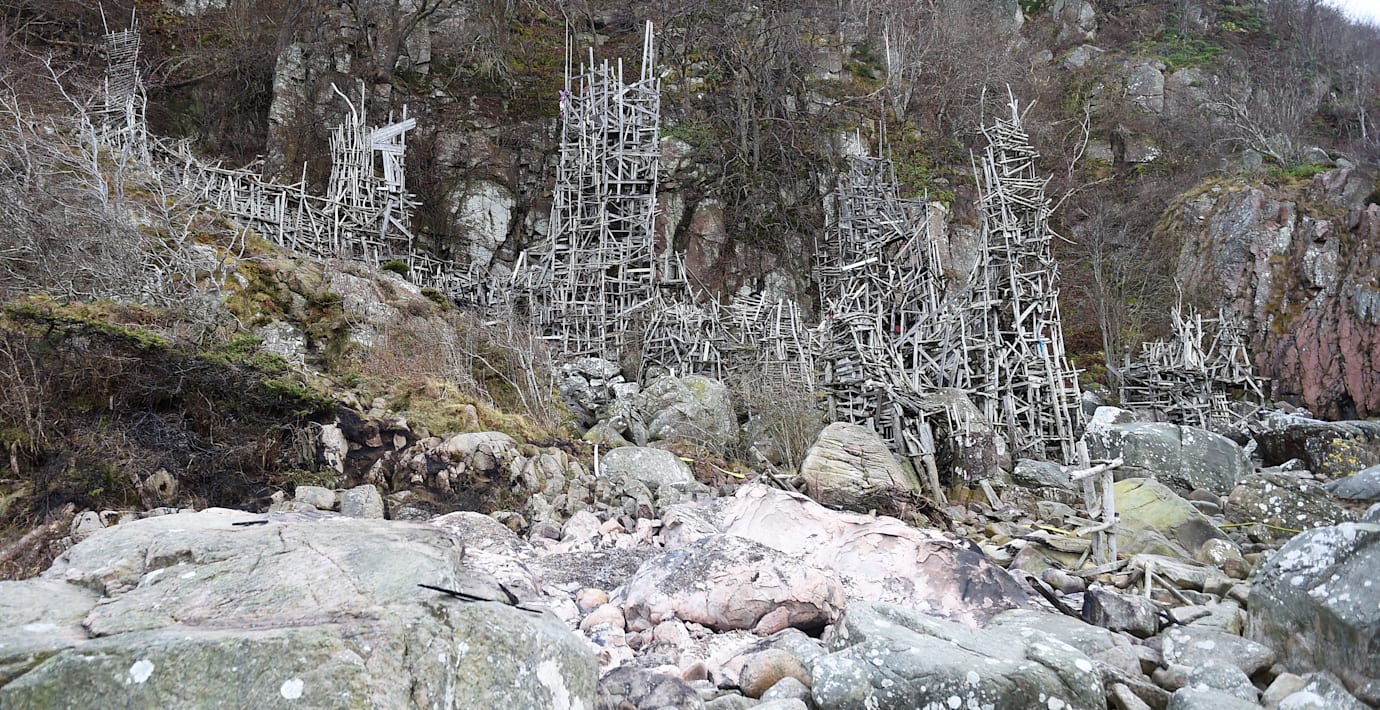 Turisterna strömmar till Lars Vilks konstverk Nimis på naturreservatet Kullaberg i Skåne, enligt SVT Helsingborg. Förra veckan var det enligt länsstyrelsen över 5 000 bilar parkerade närmast konstverket, jämfört med 3 700 samma vecka i fjol.