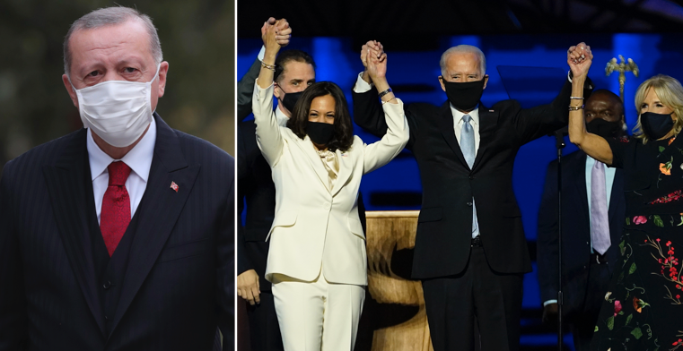 Turkiets president Recep Tayyip Erdogan gratulerar Joe Biden och Kamala Harris till segern i det amerikanska presidentvalet. Det rapporterar flera medier med hänvisning till ett uttalande. Där skriver han att han hoppas på goda relationer länderna emellan.