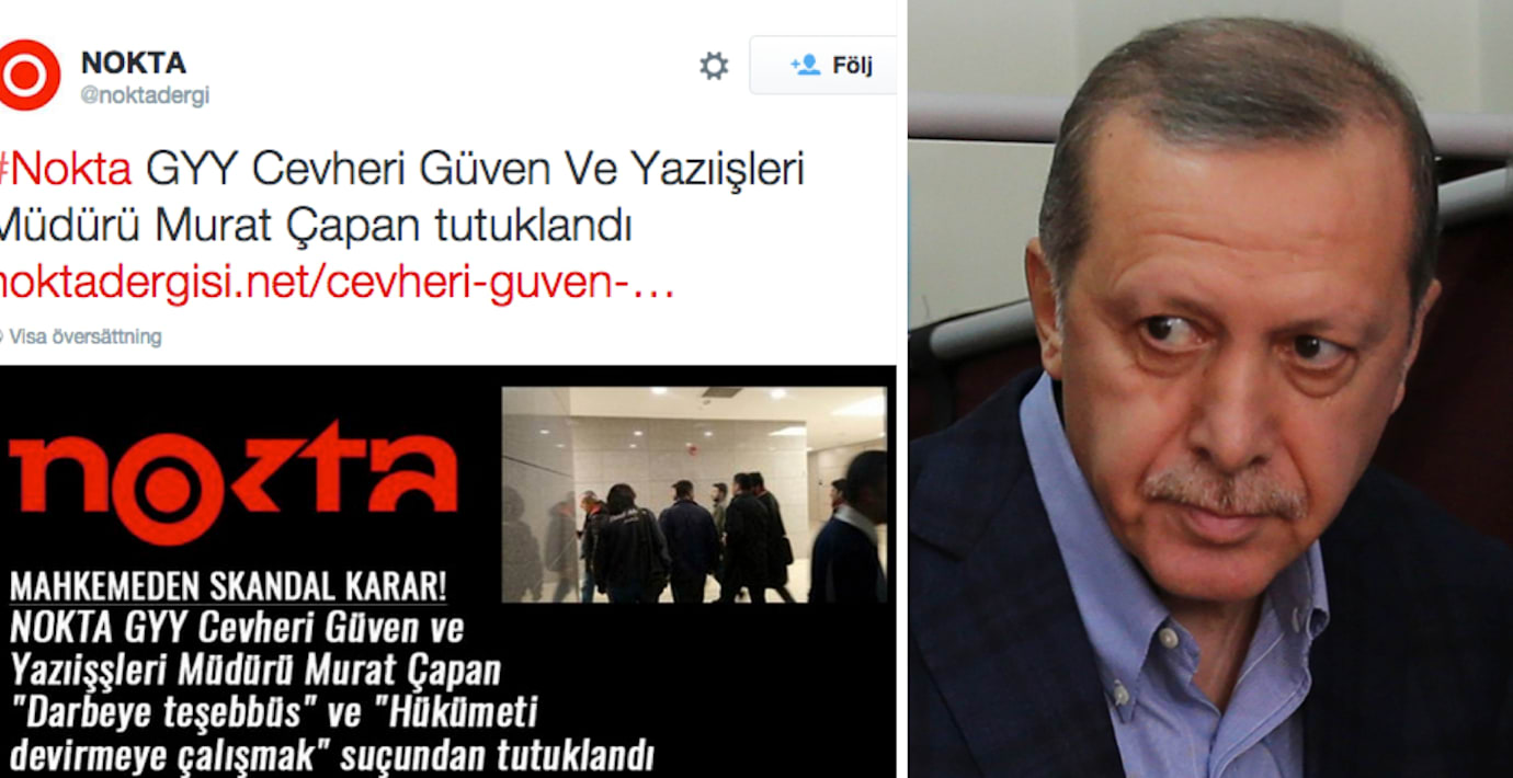 ”Noktas chefredaktör Cevheri Guven och redaktionschef Capan greps anklagade för att försöka störta regeringen”, skriver tidningen.