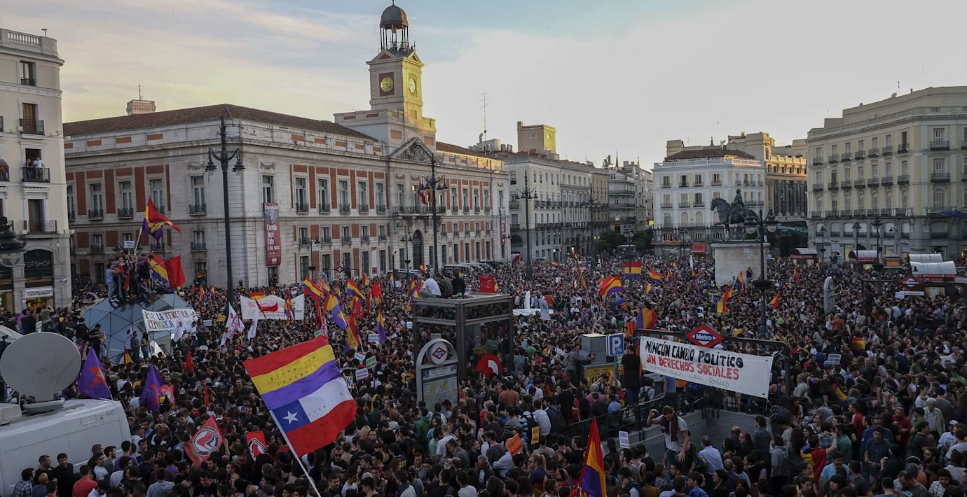 På Madrids gator demonstrerade i går tusentals mot den spanska monarkin med anledning av att kungen Juan Carlos i går meddelade att han ska abdikera. Enligt tidningen El País har mer än 100 000 personer skrivit under ett upprop som begär att en folkomröstning ska hållas om huruvida landet ska vara en monarki eller en republik.