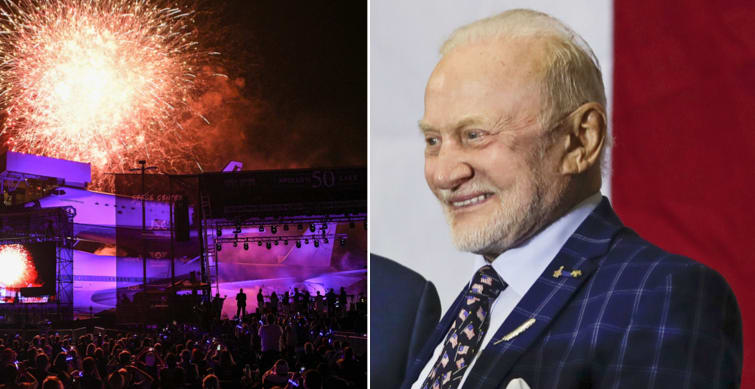 I Houston samlades tusentals rymdfans vid NASA:s rymdcenter och fyrverkerier sköts upp.