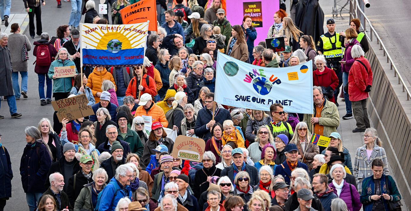 – Klimatet är vårt största problem och det verkar helt ha mörkats ner, säger demonstranten Stina, 85.