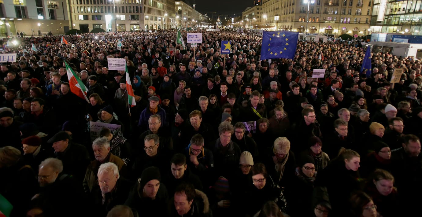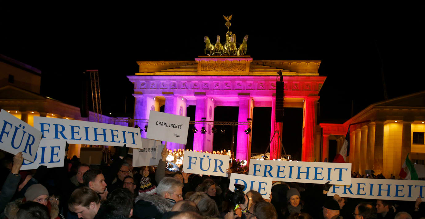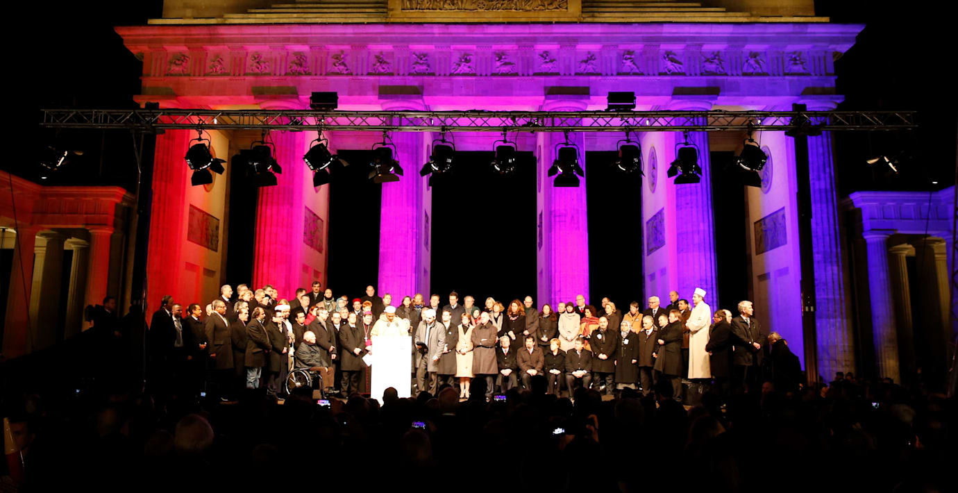 Omkring 10 000 människor samlades i kväll vid Brandenburger Tor i Berlin tillsammans med ledande tyska politiker och religiösa ledare för att delta i en manifestation mot islamofobi och extremism och för tolerans. Manifestationen arrangerades av Muslimska centralrådet och bland annat Tysklands förbundskansler Angela Merkel och presidenten Joachim Gauck deltog.