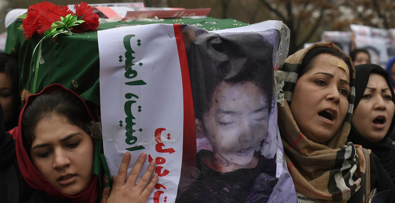 I helgen hittade sju halshuggna kroppar från hazarer som kidnappats, och i dag fördes sju kistor genom ett duggregningt, grått Kabul, rapporterar SR Ekot. En av de dödade var en nioårig flicka.