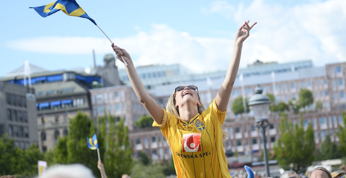 Strålande sol, svenska flaggor och jubel. Omkring 10 000-15 000 personer kom till Kungsträdgården i Stockholm för att fira U21-landslagets historiska EM-guld.