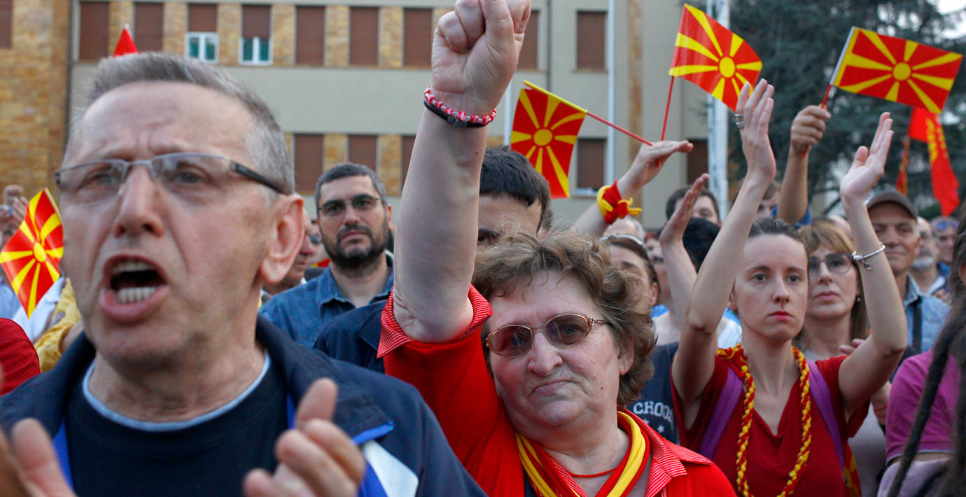 Demonstranterna anser att uppgörelsen, där socialdemokratiska SDSM kommit överens med tre albanska partier, kommer att hota den nationella enigheten. I uppgörelsen blir det konservativa nationalistiska partiet VMRO-DPMNE tvunget att lämna ifrån sig makten efter tio års styre.