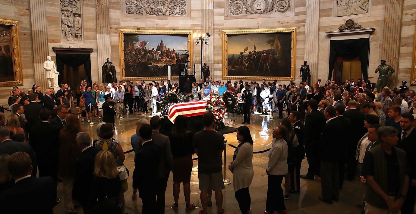 Den republikanske politikern Mitch McConnell passade även han på att hylla McCain som en ”amerikansk hjälte”.