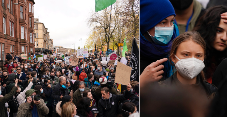 Tusentals deltog under fredagen i den stora klimatmarschen i Glasgow arrangerad av Fridays for future. Bland dem fanns klimataktivisten Greta Thunberg, som senare också talade.