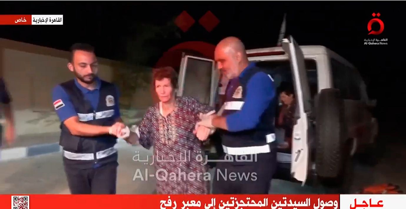 Det handlar om två äldre israeliska kvinnor. De fördes från Gazaremsan till Egypten där de togs emot av Röda korset och israelisk militär.