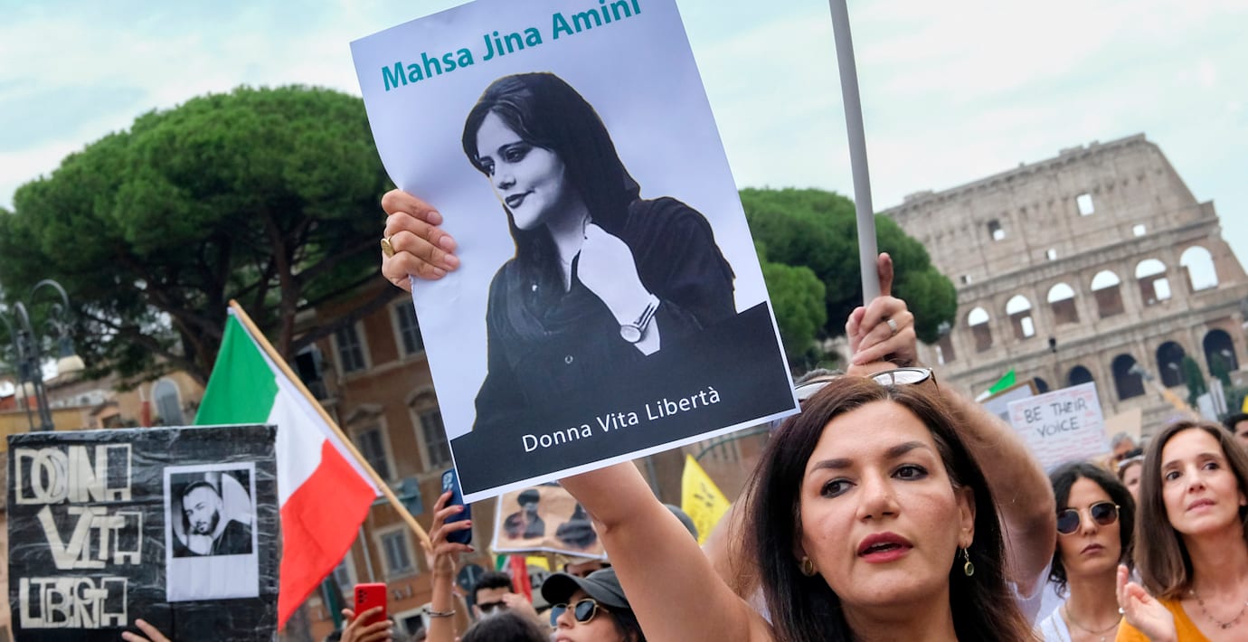 22-åriga Mahsa Zhina Amini dog i september 2022 efter att hon gripits av landets moralpolis för att inte ha burit sin slöja på ett korrekt sätt.