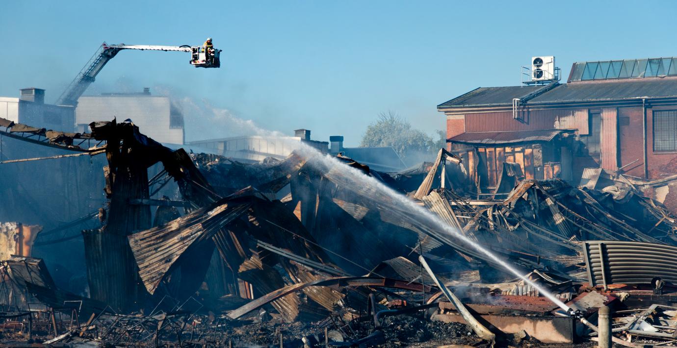 Branden började i en bil och spred sig sedan vidare till ett affärskomplex.