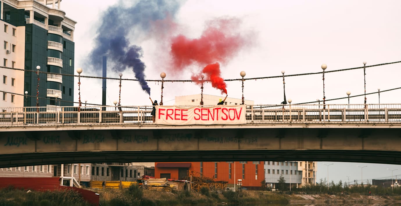 Gruppen var på plats vid en fängelsekoloni i området för att genomföra en protestaktion mot fängslandet av den ukrainska filmskaparen Oleg Sentsov.