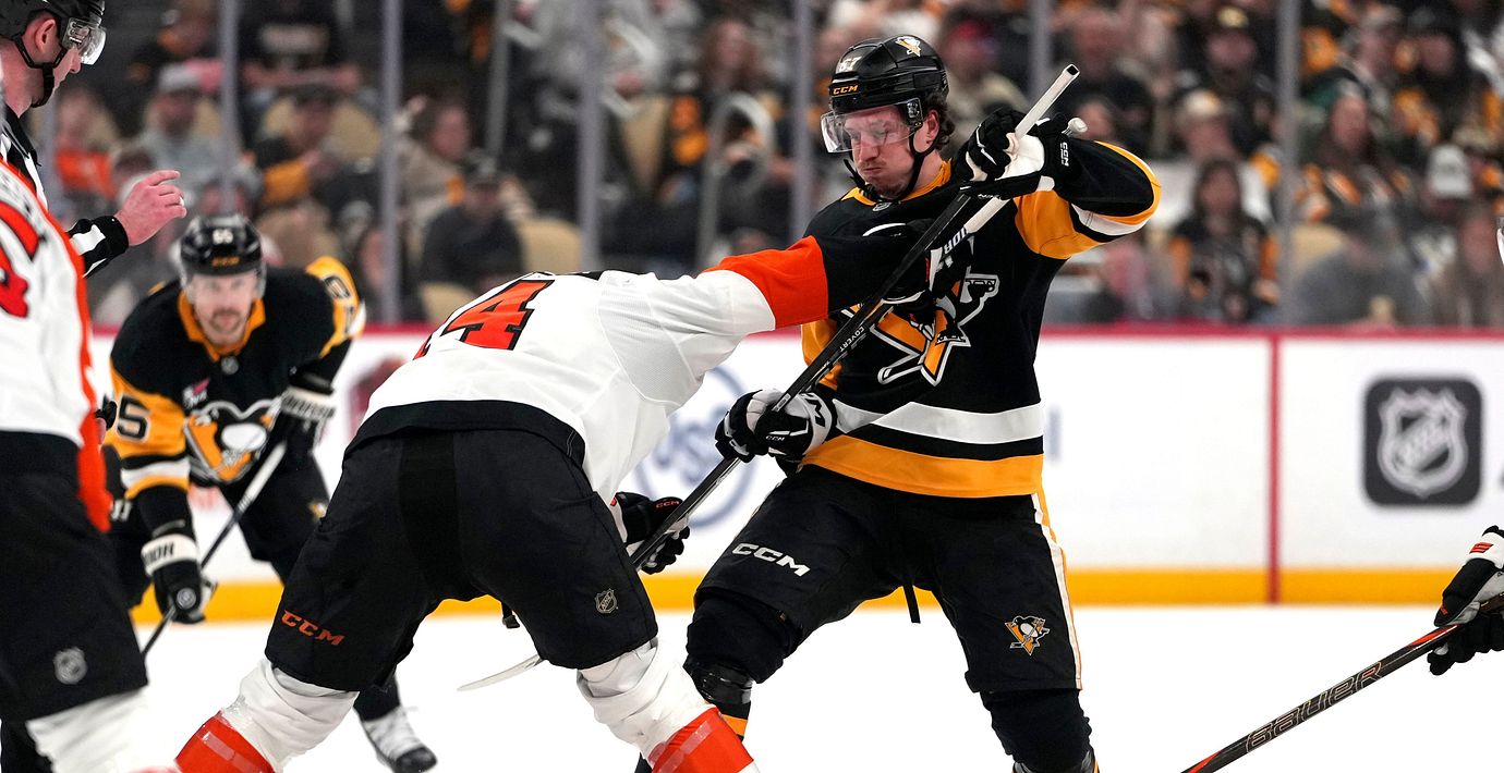 Både Rickard Rakell och Erik Karlsson gjorde mål i natt, men det hjälpte inte. Deras Pittsburgh Penguins förlorade ändå mot ärkerivalerna Philadelphia Flyers.