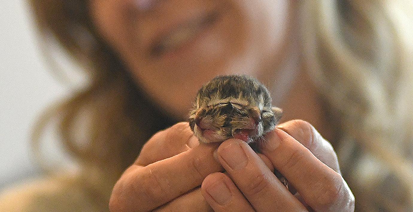 Tvåhövdad kattunge född i USA: Både jamar och äter