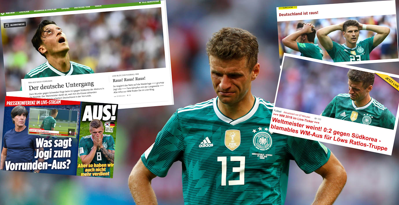 De regerande VM-mästarna Tyskland kom sist i grupp F och är ute ur fotbolls-VM. Det är första gången någonsin som Tyskland inte lyckas avancera från gruppen. Den tyska pressen sågar nu sitt landslag totalt.