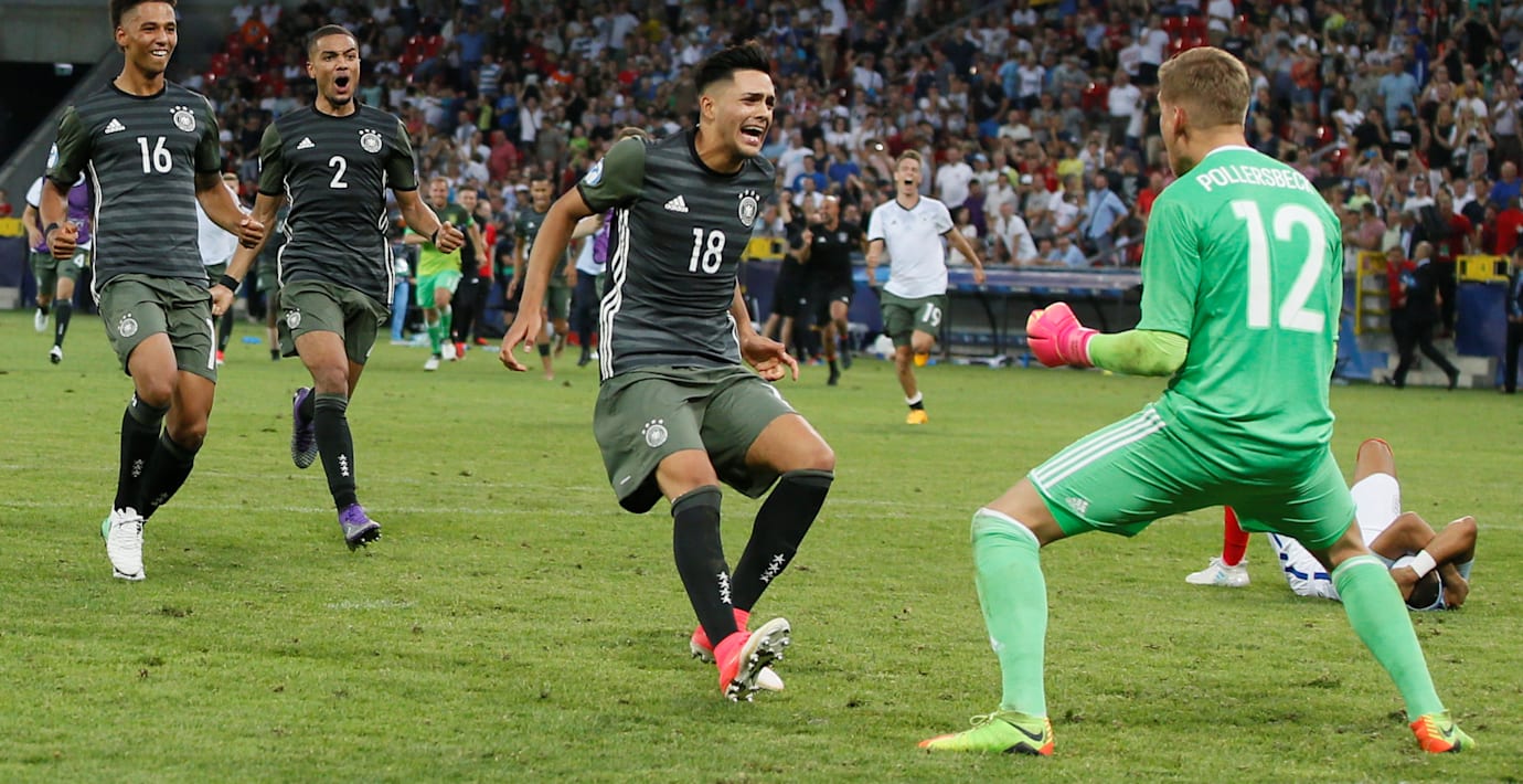 Tyskland är klart för final i U21-EM efter att ha besegrat England i semifinalen på straffar. Tyskarna förde stora delar av matchen och tog ledningen i den 35:e minuten genom David Selke. Men England vände till 2–1 efter mål Demarai Gray och Tammy Abraham. Med 20 minuter kvar kvitterade inhopparen Felix Platte för tyskarna.