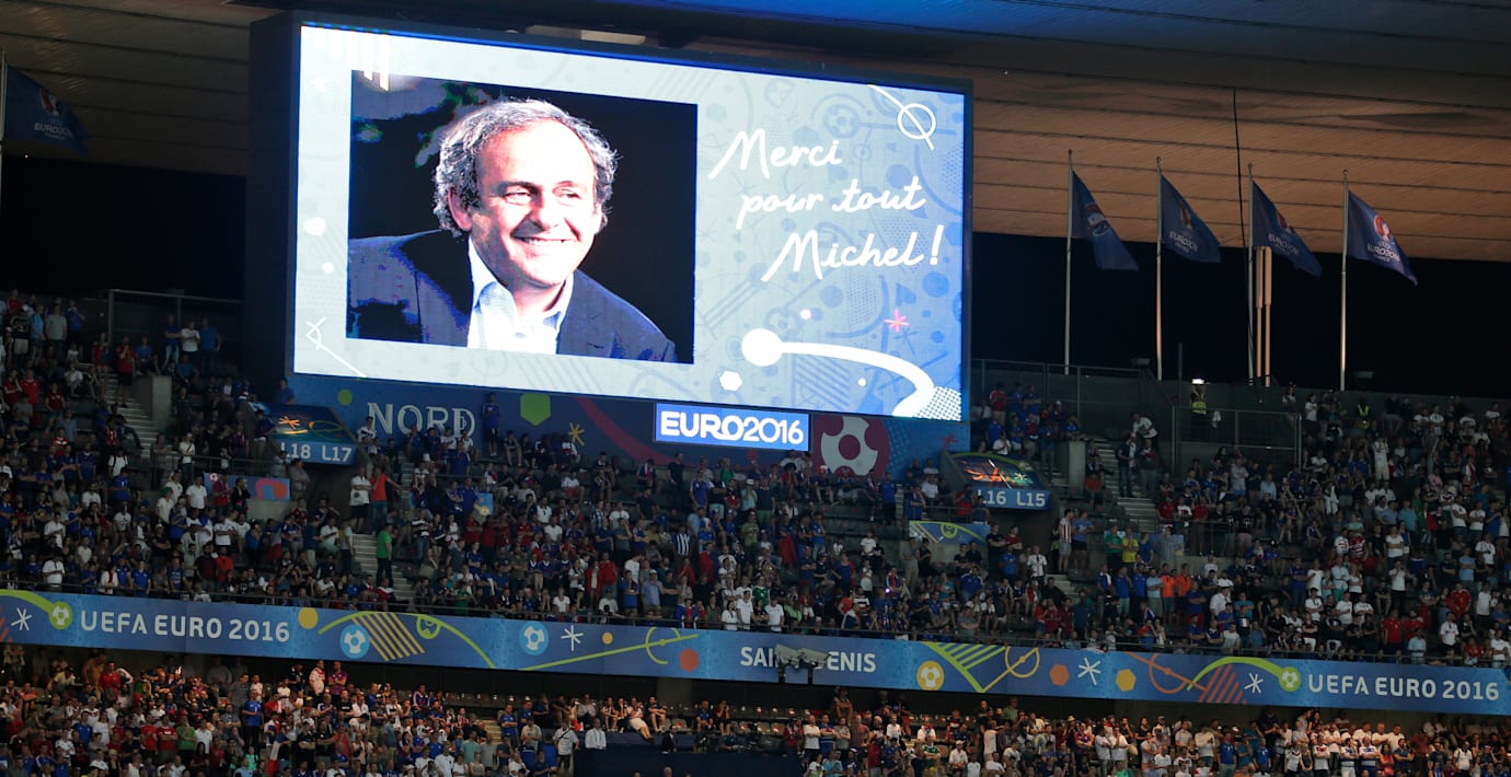 Portugals firande var på topp efter att laget vunnit EM-finalen mot Frankrike. Men mitt under firandet dök en bild på den tidigare avstängde Uefa-ordföranden Michel Platini upp på storbildsskärmen. Under bilden fanns texten ”Tack för allt, Michel”, skriver The Guardian.