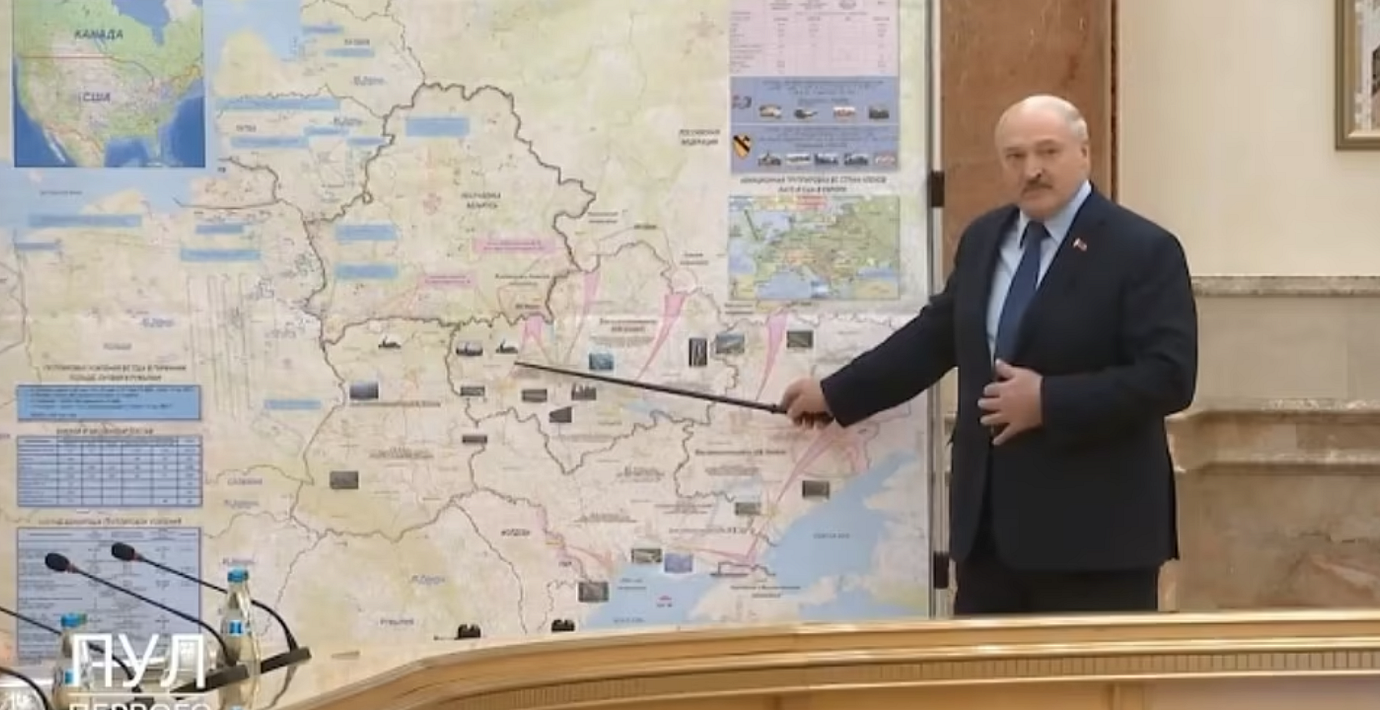 I går släpptes bilder från Belarus som visade diktatorn Aleksandr Lukasjenko framför en karta. The Hill skriver att kartan tycktes visa trupprörelser och mål i Ukraina, men även i utbrytarregionen Transnistrien i Moldavien.