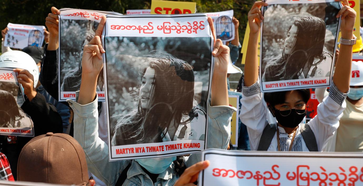 20-åriga Mya Thwe Thwe Khaing deltog i demonstrationer mot militärkuppen i landet när hon sköts i huvudet av polis den 9 februari. Tidigt på fredagsmorgonen avled hon av sina skador.