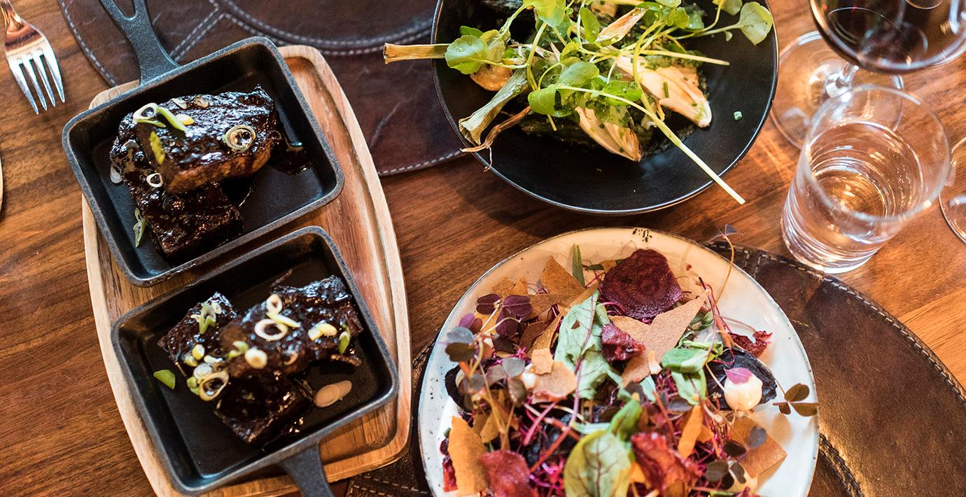 Menyn har dessutom inslag av asiatiska smaker som t.ex koreansk bifftartar, en misogratinerad hälleflundra eller hummus med shiitake.
