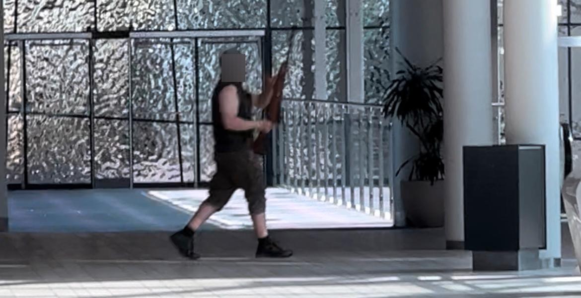 Mannen bar ett gevär av märket Sauer och ett halvautomatisk pistol av typen Walther P38 när dådet utfördes. Dessutom bar han en kniv, enligt polisen.