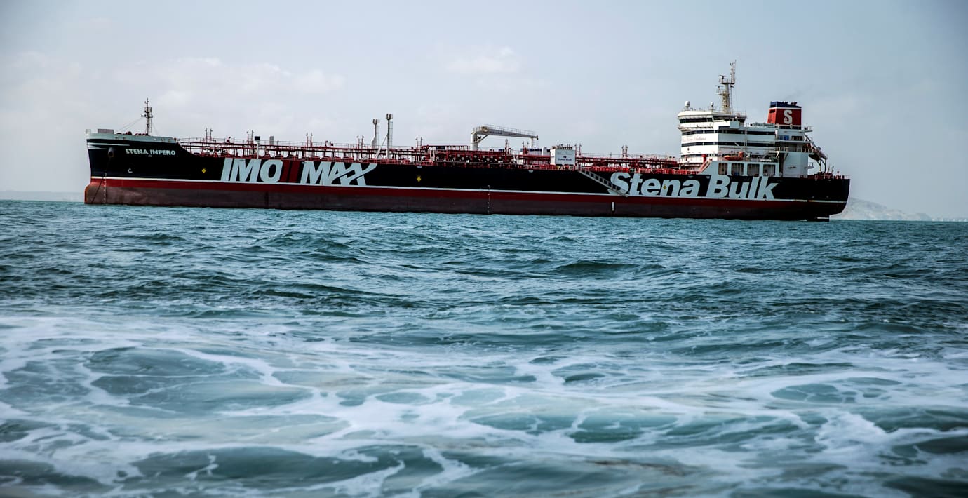 Iran beslagtog fartyget, som seglar under brittisk flagg, för knappt en månad sedan i Hormuzsundet när fartyget var på väg till Saudiarabien.