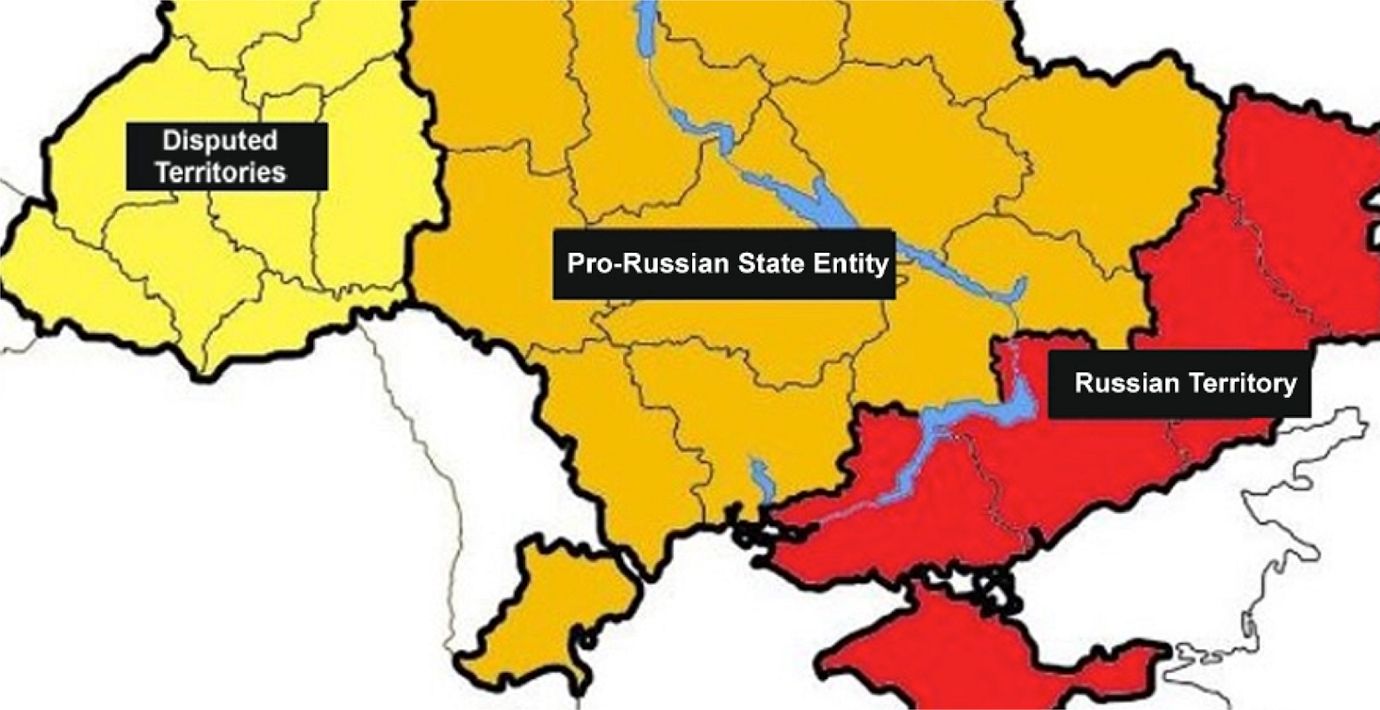 Centrala Ukraina ska enligt planen bli vad Kreml kallar en ”prorysk statlig enhet”, med en ryskvänlig regering och rysk militär närvaro. Västra Ukraina ska bli ”omstridda territorier”, vars öde ska avgöras i förhandlingar mellan Ryssland, Polen, Ungern och Rumänien, enligt källorna.