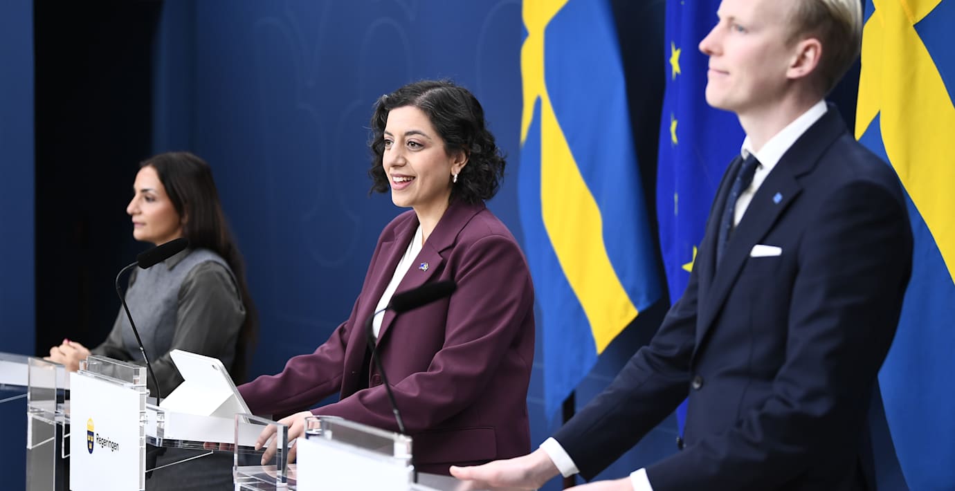 Regeringen och SD vill att fristående förskolor och skolor ska omfattas av offentlighetsprincipen, säger utbildningsminister Simona Mohamsson (L) på en pressträff.