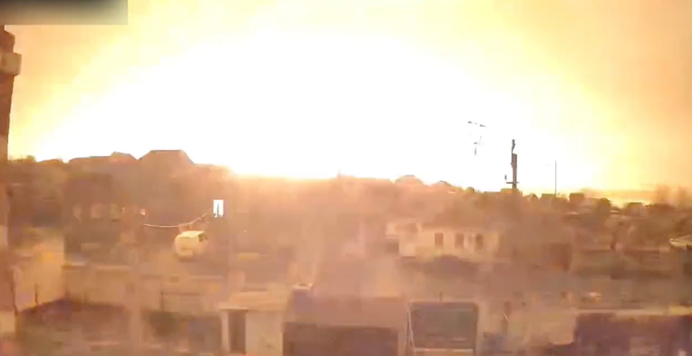I ett videoklipp upplagt av Iuliia Mendel, tidigare rådgivare till president Zelenskyj, på Twitter syns ett kraftigt ljussken lysa upp himlen i Mykolajiv.