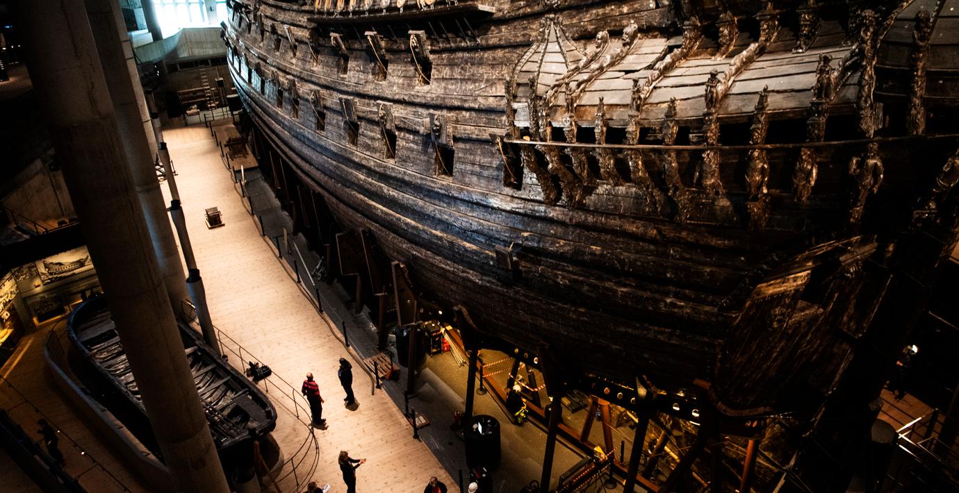 Två klimataktivister från Återställ våtmarker har klättrat på Vasaskeppet i Stockholm, rapporterar Expressen.